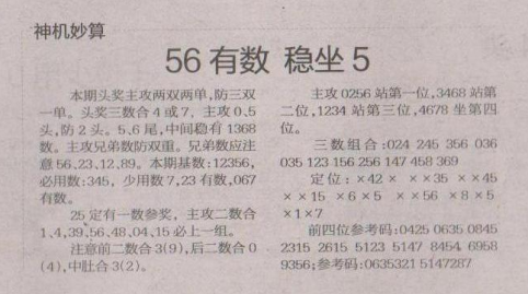 【神机妙算】第1656期预测信息<特区报>