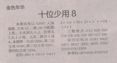 【金色年华】第1657期预测信息<特区报>