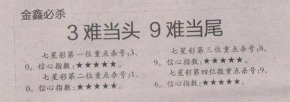 【金鑫必杀】第1657期预测信息<特区报>