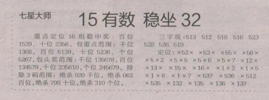 【七星大师】第1657期预测信息<特区报>