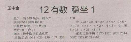 【玉中金】第1657期预测信息<特区报>
