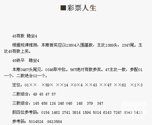 【彩票人生】第1658期预测信息<特区报>