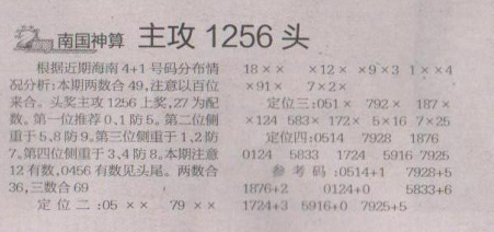 【南国神算】第1658期预测信息<特区报>