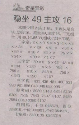 【奇星异彩】第1658期预测信息<特区报>