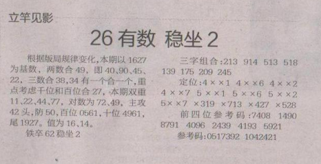 【立竿见影】第1659期预测信息<特区报>