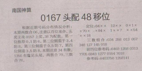 【南国神算】第1659期预测信息<特区报>