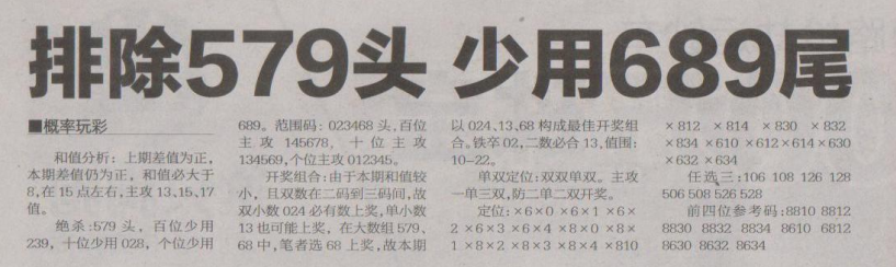 【概率玩彩】第1660期预测信息<特区报>