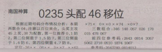 【南国神算】第1660期预测信息<特区报>