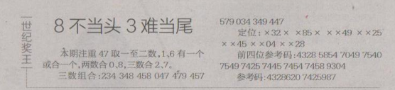【世纪奖王】第1660期预测信息<特区报>