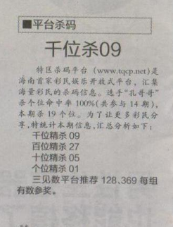 【平台杀码】第1661期预测信息<特区报>
