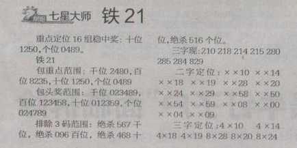 【七星大师】第1661期预测信息<特区报>