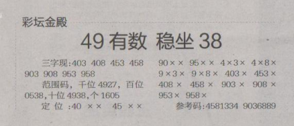 【彩彩坛金殿】第1662期预测信息<特区报>