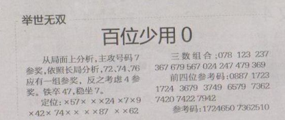 【举世无双】第1662期预测信息<特区报>