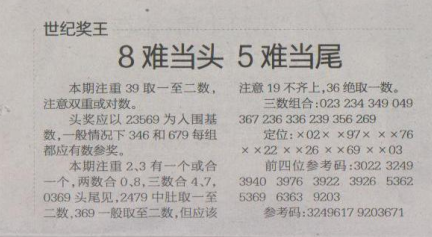 【世纪奖王】第1662期预测信息<特区报>