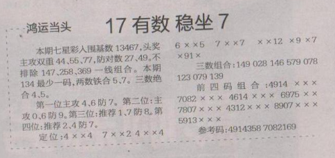 【鸿运当头】第1663期预测信息<特区报>