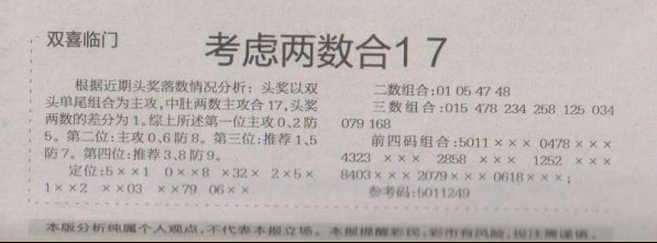 【双喜临门】第1663期预测信息<特区报>