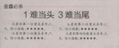 【金鑫必杀】第1663期预测信息<特区报>