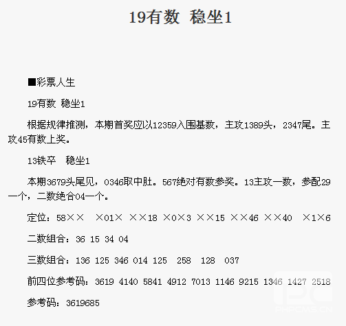【彩票人生】第1664期预测信息<特区报>