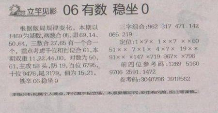 【立竿见影】第1664期预测信息<特区报>
