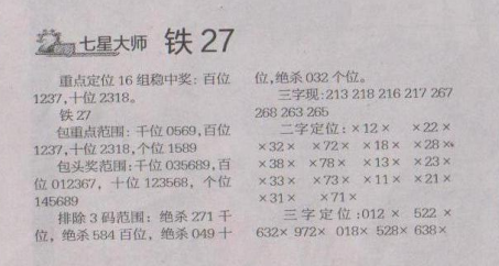 【七星大师】第1664期预测信息<特区报>