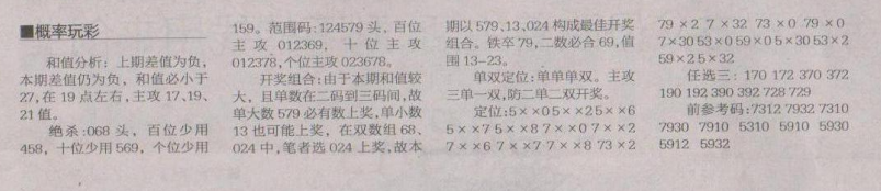 【概率玩彩】第1666期预测信息<特区报>