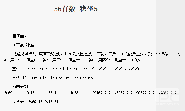 【笑面人生】第1667期预测信息<特区报>