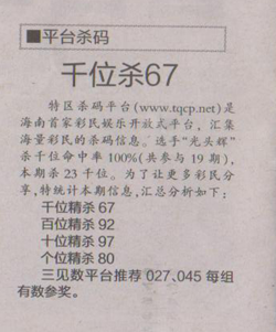 【平台杀码】第1667期预测信息<特区报>