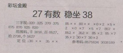 【彩坛金殿】第1668期预测信息<特区报>