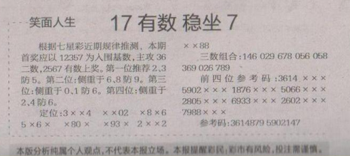 【笑面人生】第1669期预测信息<特区报>