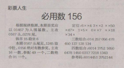 【彩票人生】第1671期预测信息<特区报>