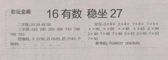 【彩坛金殿】第1672期预测信息<特区报>