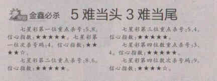 【金鑫必杀】第1673期预测信息<特区报>