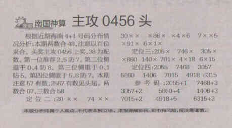 【南国神算】第1673期预测信息<特区报>