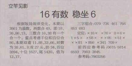 【立竿见影】第1675期预测信息<特区报>