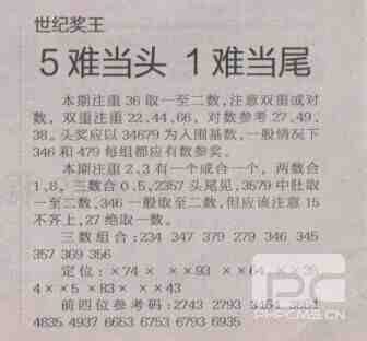 【世纪奖王】第1675期预测信息<特区报>