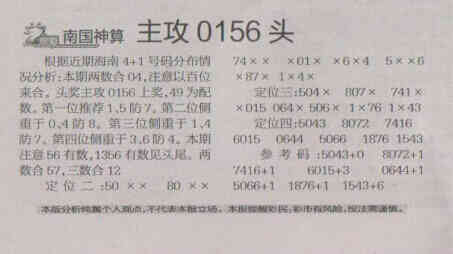 【南国神算】第1676期预测信息<特区报>