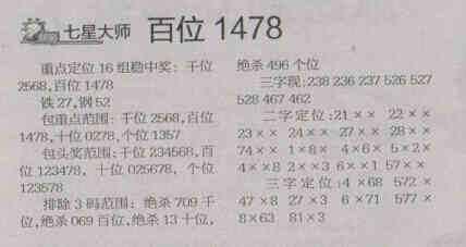 【七星大师】第1676期预测信息<特区报>