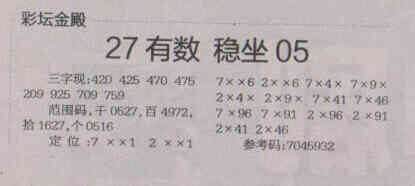 【彩坛金殿】第1677期预测信息<特区报>