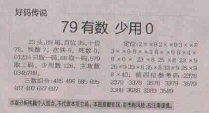 【好码传说】第1677期预测信息<特区报>