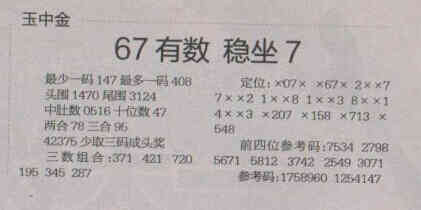 【玉中金】第1677期预测信息<特区报>