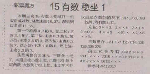 【彩票魔方】第1678期预测信息<特区报>