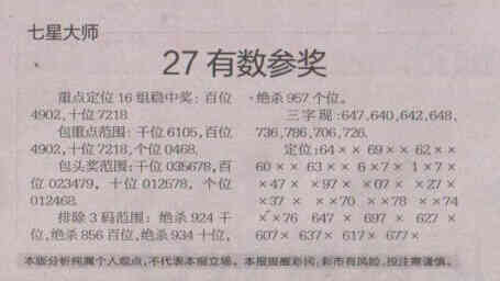 【七星大师】第1678期预测信息<特区报>