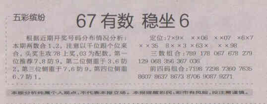 【五彩缤纷】第1678期预测信息<特区报>