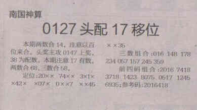 【南国神算】第1680期预测信息<特区报>