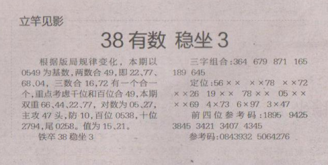 【立竿见影】第1683期预测信息<特区报>
