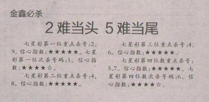 【金鑫必杀】第1683期预测信息<特区报>