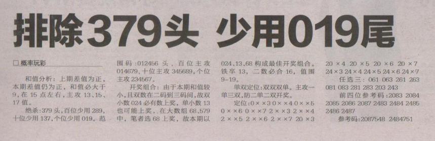 【概率玩彩】第1683期预测信息<特区报>
