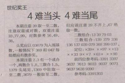 【世纪奖王】第1684期预测信息<特区报>