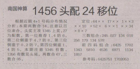【南国神算】第1684期预测信息<特区报>