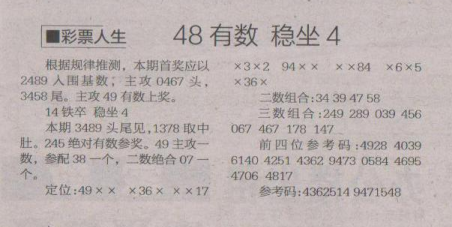 【彩票人生】第1685期预测信息<特区报>